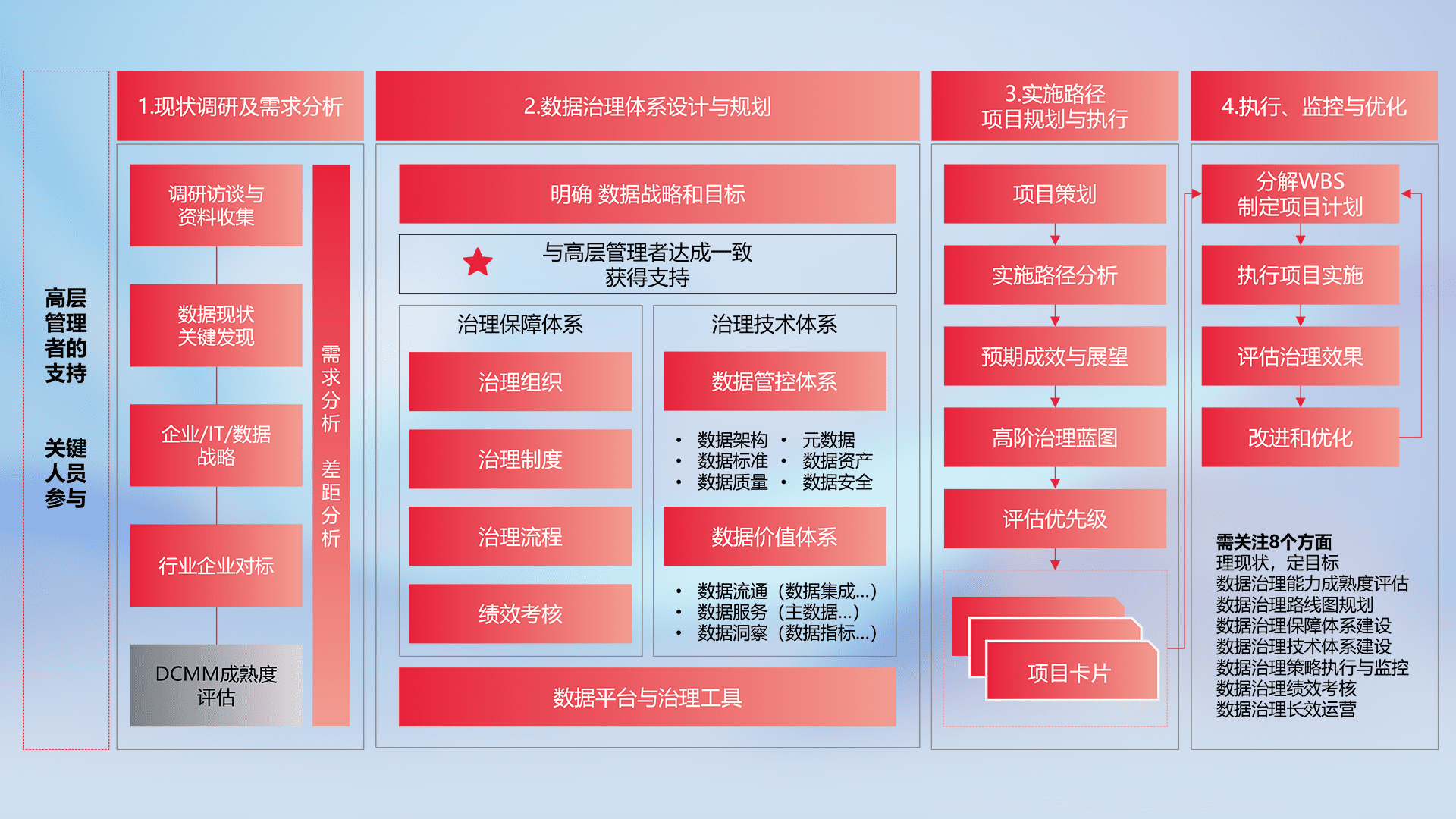 制定并执行统一的数据标准,,,规范数据定义和格式,,,消除冗余和不一致性,,,实现跨部门和跨系统的数据一致性,,为企业提供标准化的数据基础。。。